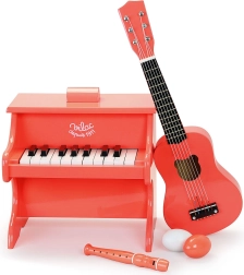 Deze houten VILAC gitaar in levendig oranje is het perfecte speelgoed voor kleine muzikanten. Dankzij de nylon snaren speelt hij prettig en is hij zacht voor kinderhanden. De compacte afmetingen liggen goed in kleine handen en stimuleren creatief spel.