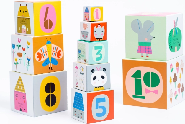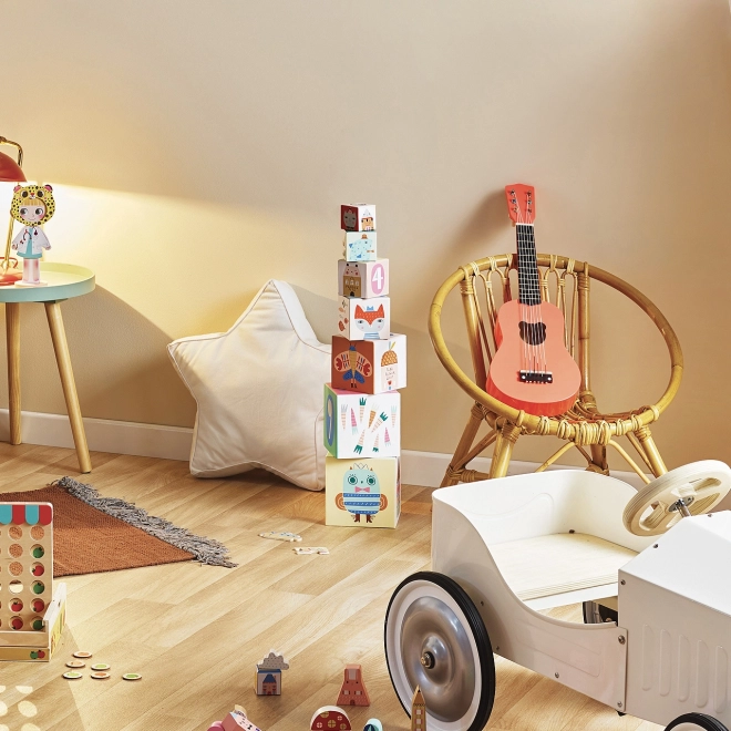 De stapeltoren van blokken VILAC x Suzy Ultman combineert plezier en leren. Kinderen kunnen hoge torens bouwen, de blokken sorteren op grootte of ze verkennen dankzij de vrolijke dierenmotieven en cijfers van 1 tot 10. De illustraties van Suzy Ultman zijn speels, kleurrijk en prikkelen de verbeelding.