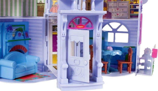 Dit kleurrijke opvouwbare poppenhuis is de ideale plek voor fantasierijk spel voor je kind. Met meerdere kamers en diverse accessoires biedt het uren speelplezier en stimuleert het creativiteit en verhalen vertellen, dankzij de gemakkelijke draagbaarheid met een praktische handgreep.