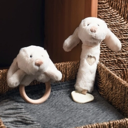 Het zachte gerammel stimuleert het gehoor, de pieper motiveert om te knijpen en de bijtring brengt verlichting – alles in één lief speeltje.