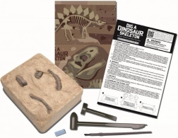 De set bevat een gipsblok met botten, basisgereedschap voor het opgraven en een handleiding. Open de doos en ga meteen aan de slag – ideaal voor een middag of weekendactiviteit.