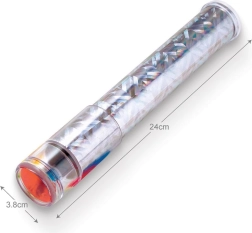 In de doos vind je alles wat je nodig hebt om een functionele caleidoscoop van ca. 25 cm te maken. Dankzij verwisselbare vullingen en versieringen kunnen kinderen unieke patronen creëren van kralen, pailletten en kleurrijke schijven. Geweldig voor het ontwikkelen van fijne motoriek, fantasie en basisoptische principes.