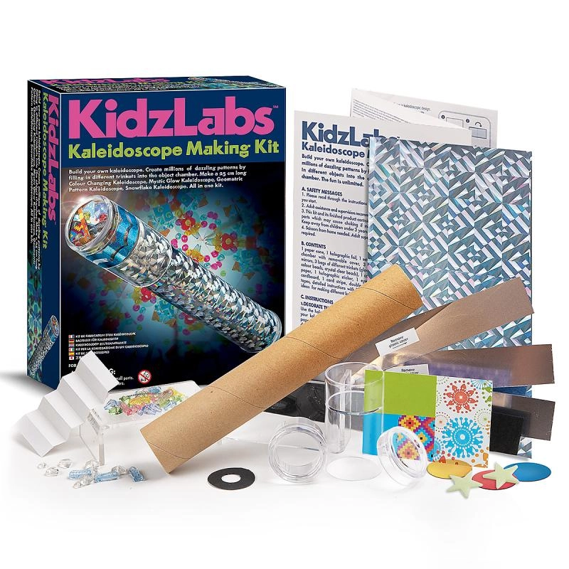 Bouw je eigen caleidoscoop en kijk hoe eindeloze combinaties van kleuren en vormen voor je ogen tot leven komen. De KidzLabs-kinderset is ideaal voor jonge onderzoekers – eenvoudig te bouwen, spectaculair resultaat en het plezier houdt nooit op.