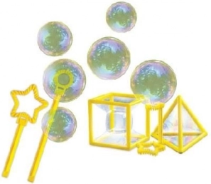 Set voor het maken van gigantische bellen. Bevat een handleiding voor het maken van je eigen oplossing en hulpmiddelen voor verschillende trucs met bellen.