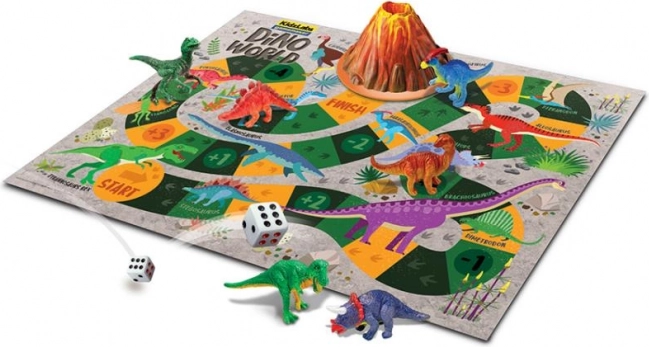 Kleur 6 dinosaurussen en een vulkaan in, en je kunt een avontuurlijk spel spelen en de vulkaan laten uitbarsten.