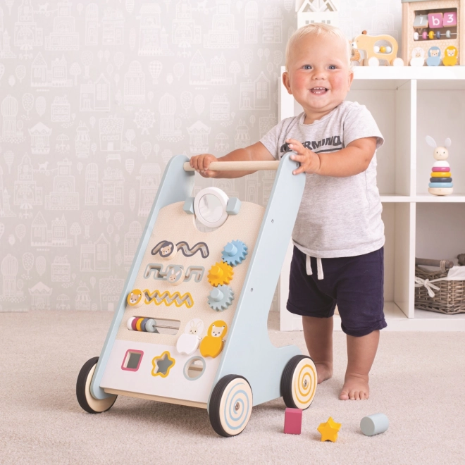 Het actieve loopwagentje Bigjigs Baby Bosdieren is ideaal voor de ontwikkeling van motorische vaardigheden en het verbeteren van de behendigheid van kinderen. Dit product biedt een reeks interactieve activiteiten, zoals vormen sorteren, tellen met een kralenrek en spelen met tandwielen.
