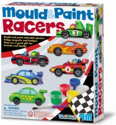 Deze set stelt kinderen in staat hun creativiteit te uiten en hun eigen raceauto's te maken met gips en verf.