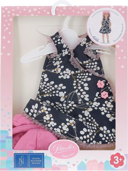 De kleding is ontworpen voor poppen van 44 cm, in het bijzonder voor de Starlette-serie. De combinatie van het donkerblauwe jurkje met bloemmotief en het roze hoedje creëert een betoverende outfit die comfortabel en zeer fotogeniek is. Nauwkeurige stiksels en oog voor detail onderstrepen de lange traditie van kwaliteit van het merk PETITCOLLIN.