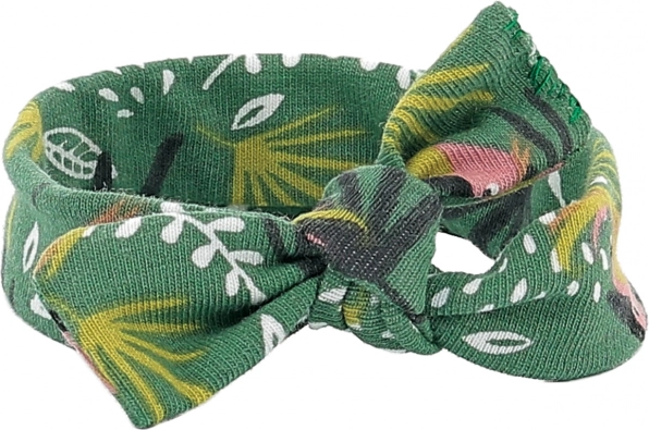 Textiele haarband met tropische print en knoop behoudt zijn vorm en matcht prachtig met de andere items.