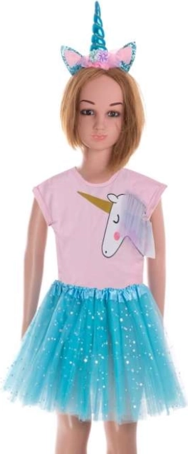 Dit betoverende kostuum laat elk feest én de kinderlijke fantasie stralen. Het tutu-rokje in ballerina-stijl is licht, glanzend en past zich dankzij de stretch taille gemakkelijk aan. De haarband is versierd met een zachte hoorn en glinsterende oortjes – de perfecte accessoire voor een kleine fee of heks.
