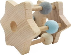 Ontdek een kwalitatieve houten rammelaar die dankzij de precieze afwerking en zachte kleuren de aandacht van je baby op natuurlijke wijze prikkelt. De stervorm ligt perfect in kleine handjes en de veilige materialen zorgen elke dag voor zorgeloos speelplezier.