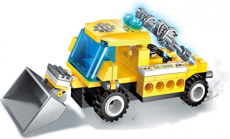 Elk deel brengt een ander model bouwmachine en door ze te combineren bouw je een grote multifunctionele machine – plezier voor uren.