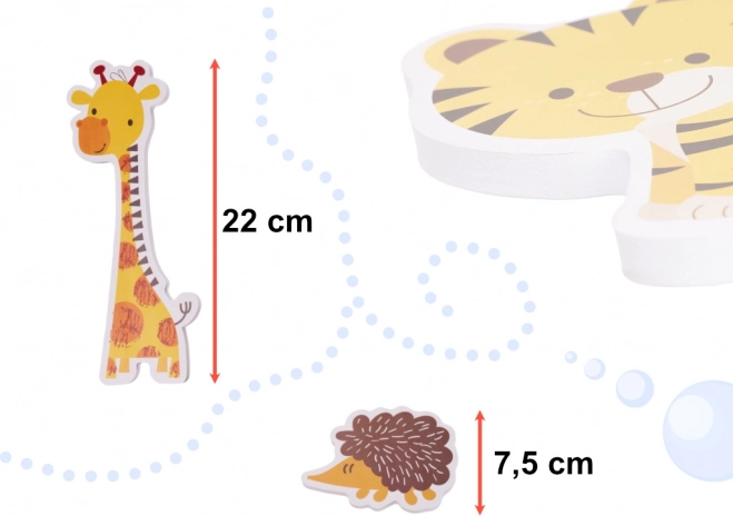 Vrolijke motieven zoals giraffe, tijger, aapje en egel spreken kinderen aan met hun felle kleuren en stimuleren creatief combineren en verhalen verzinnen.