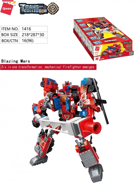 Ontdek de QMAN Blazing Mars 6-in-1 bouwset, die kinderen creatief bouwen, brandweeractie en de mogelijkheid om modellen te combineren tot een grote mech biedt. De set van duurzaam ABS-plastic is compatibel met Lego, Sluban, Cobi en meer, heeft 2 moeilijkheidsniveaus en in totaal 496 stenen voor uren speelplezier.