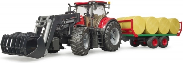 De Traktor Bruder Case IH Optum 300 CVX fascineert elke kleine tractorliefhebber met zijn vele functionele elementen. Van te openen deuren en motorkap tot een bestuurbare vooras met een verlengbare stuurhendel. Hoogteverstelbare haken en zachte, geprofileerde banden zorgen voor een realistische speelervaring.