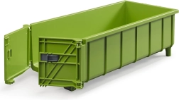 Deze realistische BRUDER-aanhanger in groen‑zwart voegt een veelzijdige container toe aan elke tractor. Dankzij het kiepmechanisme en de openende achterwand gaat het lossen moeiteloos; de container kan bovendien van het chassis worden gehaald en apart worden gebruikt.