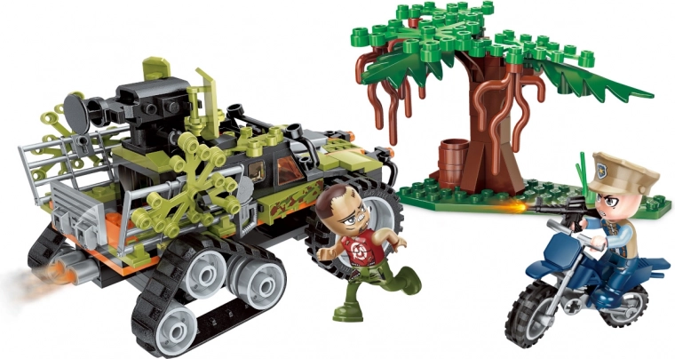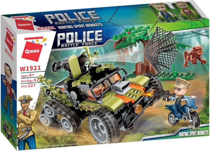 De actie-bouwset QMAN uit de serie Police Battle Force brengt een jacht op een stroper in de jungle met een werkende netwerper, terreinvoertuigen en 2 minifiguren. In de doos vind je 227 onderdelen van duurzaam ABS-kunststof, compatibel met LEGO en andere merken.