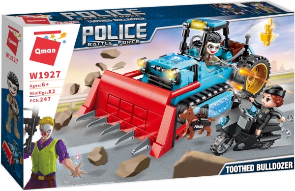De actiebouwset Qman Police Battle Force brengt een spannende achtervolging met een crimineel en zijn gevaarlijke bulldozer. De set biedt 247 onderdelen, 2 minifiguren en een beweegbaar blad. Hij is compatibel met andere bouwsets, gemaakt van duurzaam en veilig ABS-kunststof en stimuleert perfect de creativiteit en fijne motoriek van kinderen vanaf 6 jaar.