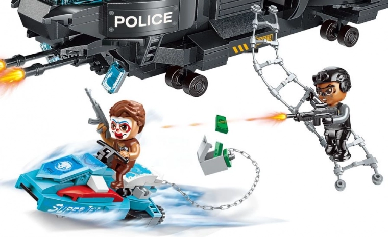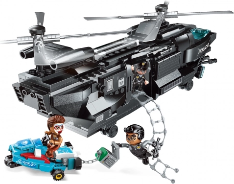 Stap in de wereld van actiemissies met een politieteam dat criminelen geen kans geeft. De helikopter met functionerende rotors en een neerlaatbare touwladder maakt een bliksemsnelle inzet midden in de actie mogelijk, terwijl de verdachte vlucht op een om te bouwen voertuig – in een mum van tijd van motor naar waterscooter.