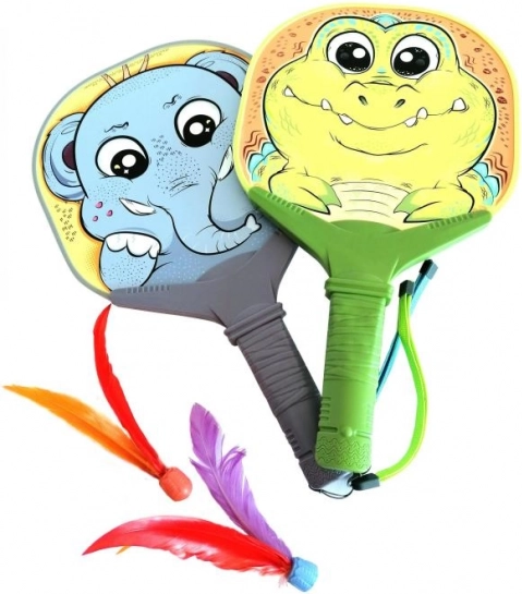 Batjes met balletjes en veertjes met dierenthema.