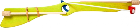 Deze grote groene kruisboog van massief hout biedt kinderen veel plezier, zowel binnen als in de tuin. Dankzij het zorgvuldig gepolijste oppervlak en de afgeronde randen is het spel veilig en comfortabel. Het eenvoudige veer-/elastiekmechanisme helpt kinderen te oefenen met richten en gevoel voor kracht.