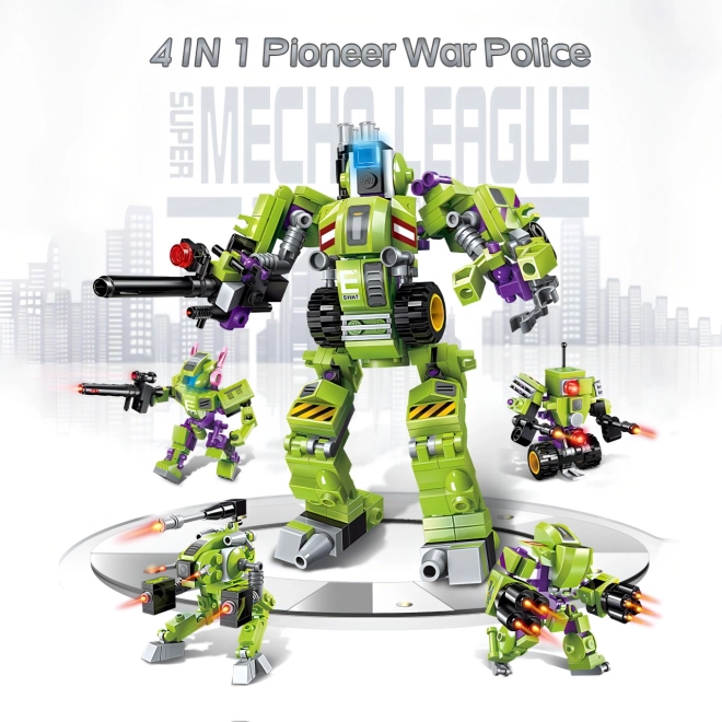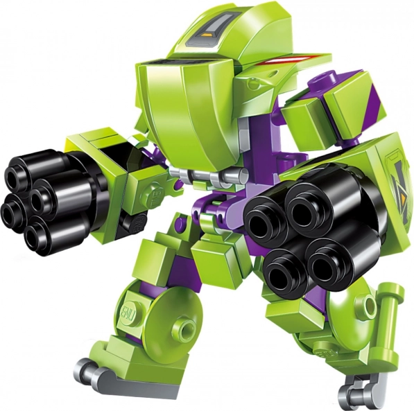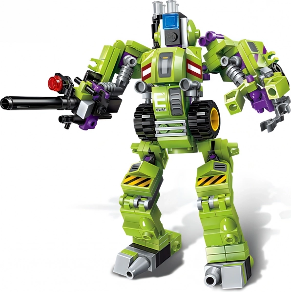 De bouwset maakt het mogelijk om verschillende modellen te maken, waaronder een grote gepantserde robot, en is compatibel met andere bouwsets.