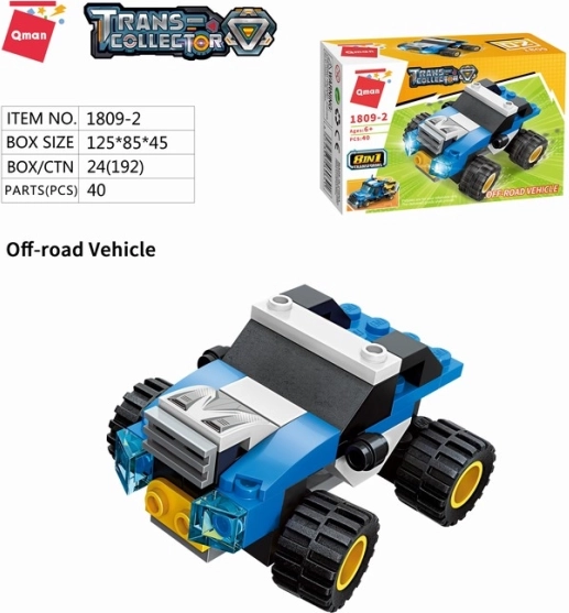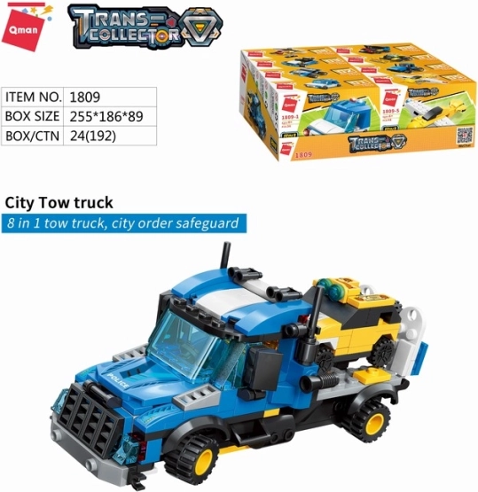 Til bouwen en spelen naar een hoger niveau met de Qman City 8-in-1 set. Uit de afzonderlijke miniboxen bouw je een auto, offroad, racewagen, helikopter, vliegtuig, tractor, graafmachine en treintje – en door ze te combineren maak je een indrukwekkende bergingswagen. Dankzij de hoogwaardige steentjes van ABS-plastic is de set duurzaam, precies en volledig compatibel met onderdelen van andere merken.