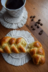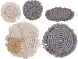 Ontdek de charme van macramé-onderzetters in een moderne grijze tint. De ronde vorm, stevig gedraaide vezels en decoratieve franjes creëren een tijdloos accessoire dat prachtig staat op de eettafel, salontafel of in je werkhoek. De onderzetters beschermen betrouwbaar zowel hout als gevoelige oppervlakken tegen de warmte van mokken, vlekken en krassen.