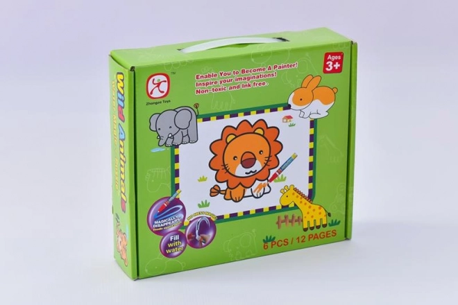 Met de bijgeleverde marker, gevuld met water, strijken kinderen eenvoudig over de witte delen van de afbeelding en zien ze de kleuren magisch verschijnen. Na het drogen keert alles terug naar de oorspronkelijke staat en kan het plezier opnieuw beginnen.