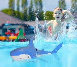 Verkrijg een ongelooflijk stuk speelgoed dat eruitziet als een echte haai. De haai MAGANA is eenvoudig te bedienen met de afstandsbediening en biedt eindeloze mogelijkheden voor plezier. Laad hem één keer op en dompel hem in het water, en de haai begint te zwemmen. Oplaadtijd is slechts 45 minuten en het plezier kan tot 30 minuten duren!