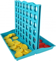 Dit klassieke bordspel is bedoeld voor twee spelers en het doel is om vier van je eigen schijfjes op een rij te plaatsen – horizontaal, verticaal of diagonaal. Het spel bevat een speelbord met een indeling van 6x7 rijen en schijfjes in twee kleuren: rood en geel.