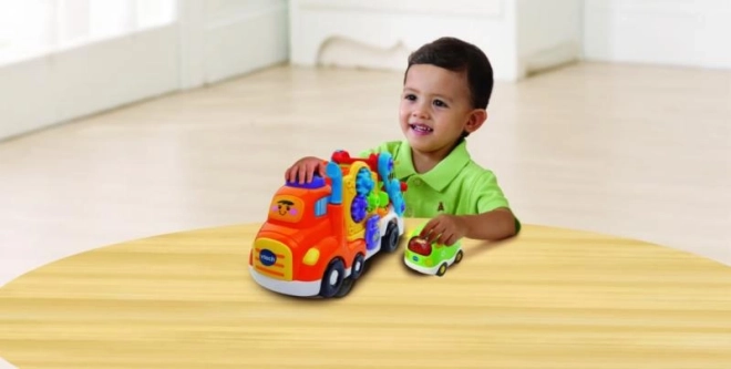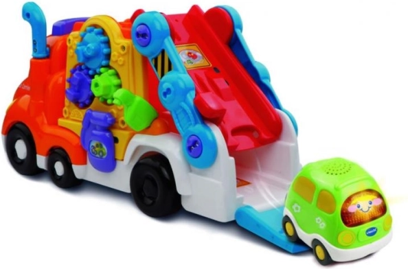 De Tut Tut-servicewagen van VTech is de ideale metgezel voor kinderen die plezier willen hebben en tegelijk willen leren. De wagen kan tot vier kleine Tut Tut-autootjes vervoeren en zit vol interactieve elementen die motorische vaardigheden en verbeeldingskracht ontwikkelen. Dankzij de “Smart point”-contactpunten speelt hij drie liedjes en spreekt hij verschillende leuke zinnen, wat helpt bij het vergroten van de woordenschat van kinderen.