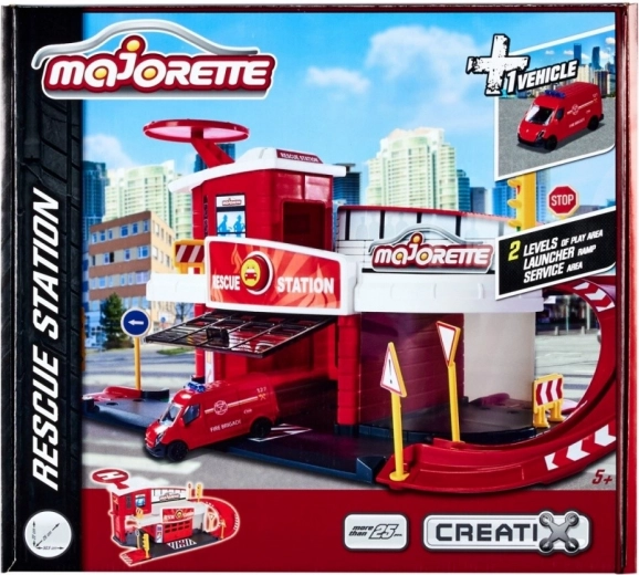 Leuk en creatief spel met het reddingsstation Majorette Creatix, inclusief een tweelaags gebouw en een metalen voertuig, ideaal voor kinderen die reddingsacties als echte helden willen ervaren.