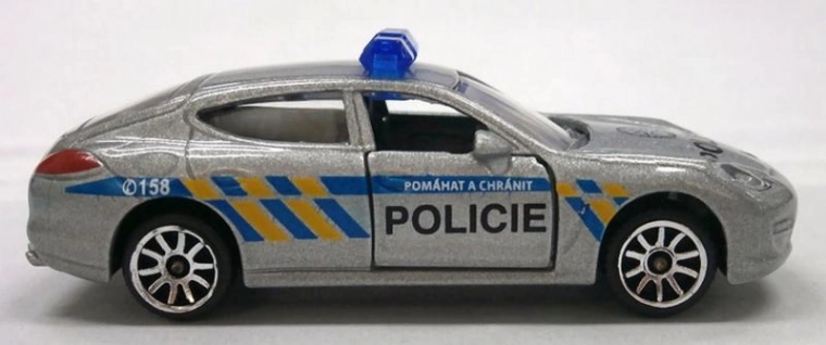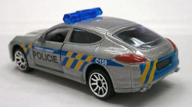 Metalen politieauto in Tsjechische versie met vrijloop en realistische bewegende onderdelen. Ideaal voor kleine autoliefhebbers.