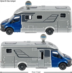 Het model is officieel gelicentieerd door HYMER en MERCEDES-BENZ en biedt een aantrekkelijke combinatie van interieur- en exterieurverlichting en 2 realistische geluiden – natuurgeluiden en motorgeluid – geactiveerd door op de motorkap te drukken. Openende deuren, een draaibare satellietantenne en banden met profiel zorgen voor soepel rijden en talloze speelscenario’s thuis en onderweg.