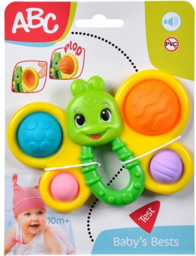 Vrolijke vlinder voor de allerkleinsten met heldere kleuren, prettige texturen en een makkelijke greep. Dankzij het handvat en vier verschillende zachte vullingen stimuleert het de zintuiglijke ontwikkeling, fijne motoriek en oog-handcoördinatie. Ideaal als eerste speelgoed voor kinderen vanaf 10 maanden.