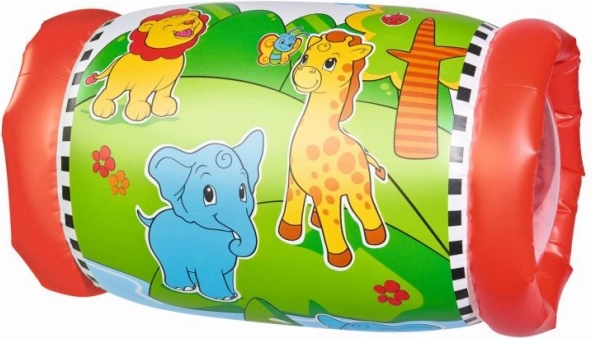 De opblaasbare rol ter ondersteuning van kruipen is een ideale hulp voor baby’s en peuters die de wereld al bewegend beginnen te ontdekken. Transparante zijkanten maken het mogelijk de twee rammelballetjes binnenin te volgen, die tijdens het rollen geluid maken en het kind aanzetten tot verder ontdekken. De vrolijke dierenprint verhoogt de aantrekkelijkheid en ondersteunt de visuele waarneming.
