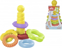 Piramide met gekleurde ringen is een ideaal hulpmiddel voor het ontwikkelen van motorische vaardigheden en het combineren bij kinderen. Bevat vijf meerkleurige ringen van verschillende vormen.