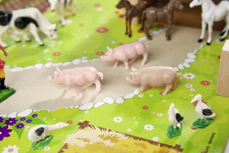 Kinderen oefenen tijdens het spelen hun fijne motoriek, logisch denken en herkenning van dieren en kleuren. Boerderijspel leidt op een natuurlijke manier tot leren over dierverzorging, voeren en werken in de tuin. De set is geweldig als losstaand speelgoed en als uitbreiding op andere bouwsets en figuren.
