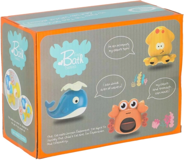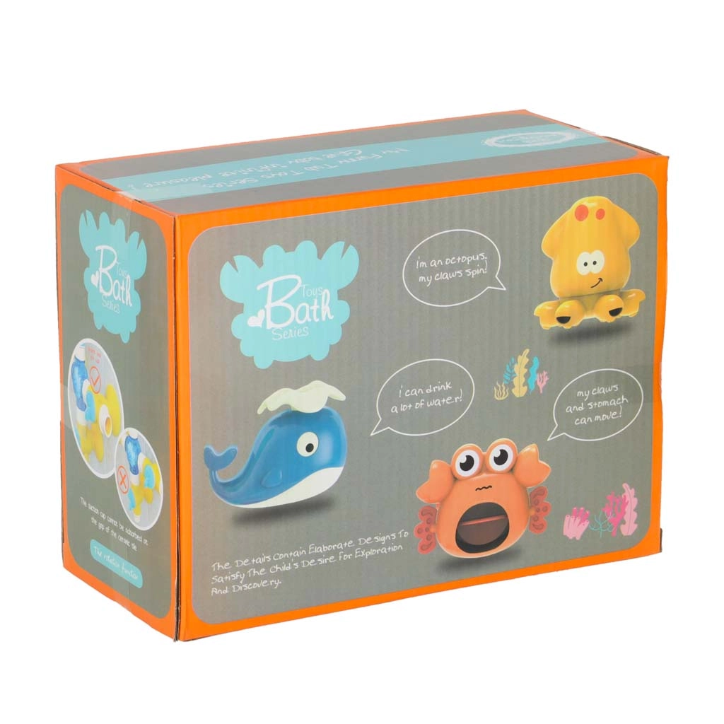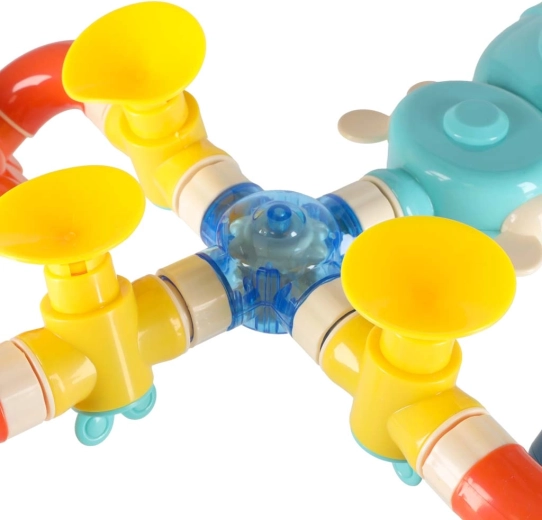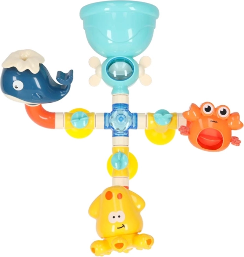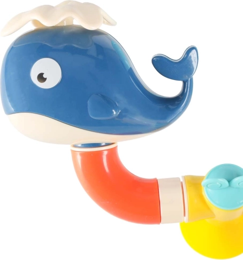 Deze kleurrijke waterbaan voor in bad bestaat uit trechters, buizen en vrolijke uitlopen in de vorm van een walvis, krab en octopus. Kinderen gieten eenvoudig water van boven en zien hoe het door het systeem stroomt, wieltjes laat draaien en uit verschillende openingen stroomt als een fontein of waterval. Veilige materialen en afgeronde randen zijn ideaal voor dagelijks waterspel.