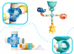 De kleurrijke waterbaan met zeediertjes maakt van elk badmoment een ontdekkingsreis. Giet water in de trechter bovenaan en de stroom activeert de verbonden buisjes, laat de wieltjes draaien en zet de figuurtjes in beweging – plezier dat de aandacht van kinderen vasthoudt en het dagelijkse baden leuker maakt.