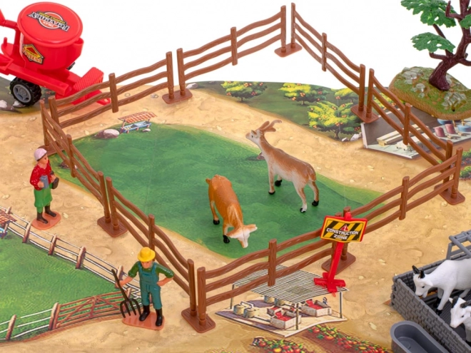 Deze gedetailleerde set neemt kinderen mee naar de wereld van het platteland. Op de papieren speelmat bouwen ze hun eigen boerderij met stal, omheiningen en een silotoren. Twee tractoren met verwisselbare opbouwen helpen bij het dagelijkse werk op de boerderij – van zaaien tot het vervoeren van balen. Dieren en machines zijn ontworpen met oog voor realistische details voor nog authentieker spel.