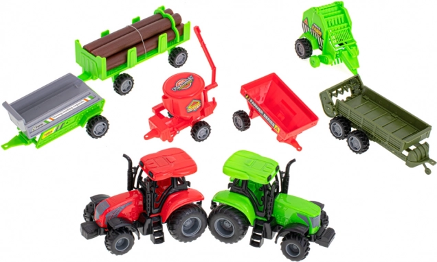 Inclusief 2 tractoren en verschillende opbouwen – aanhanger voor balen, zaaimachine/zaaier of balenpers. Ideaal om echte werkzaamheden op de boerderij na te bootsen.
