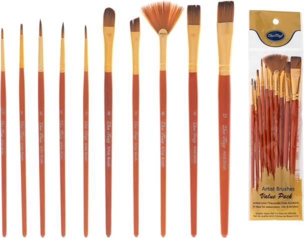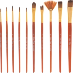 De set bevat 10 artistieke kwasten, geschikt voor gebruik met verschillende soorten verf. Dankzij de punten van verschillende diktes is het eenvoudig om ingewikkelde vormen te creëren en de dunne kwasten maken het mogelijk om elk detail te verfijnen. Elke kwast is genummerd, waardoor de juiste maat gemakkelijk te kiezen is.