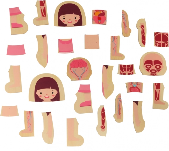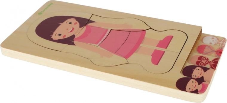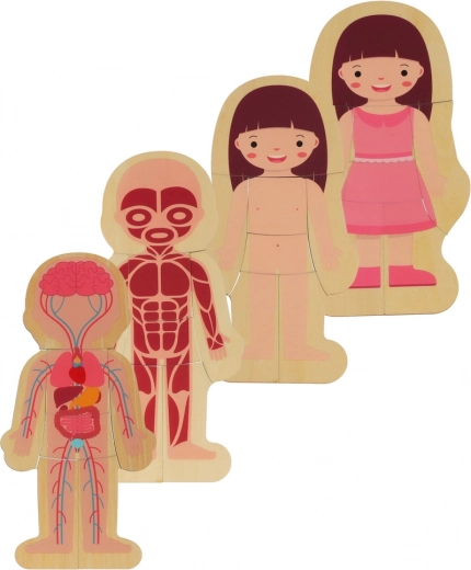 Deze hoogwaardige houten legpuzzel nodigt kinderen uit om te ontdekken hoe het menselijk lichaam is opgebouwd. Kleine ontdekkers leggen de lagen in de volgorde: skelet → organen → spieren → lichaam → kleding. Zo ontstaat een duidelijk beeld van het menselijk lichaam dat nieuwsgierigheid en natuurlijk leren zonder druk stimuleert.