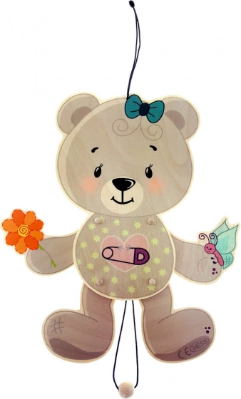 Deze hangende teddybeer is een ideale aanvulling voor elke kinderkamer. Hij is gemaakt van 100% berkenhout, waardoor hij niet alleen duurzaam is maar ook milieuvriendelijk. De bewegende delen, die worden geactiveerd door aan het koord te trekken, zorgen voor eindeloos plezier en stimuleren de motorische vaardigheden van kinderen.