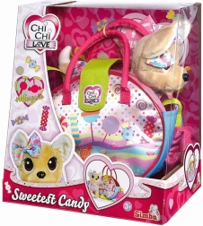 Het snoepdesign wordt aangevuld met bedeltjes in de vorm van snoepjes, die de handtas een persoonlijk tintje geven. Het hondje is zacht, aaibaar en veilig om mee te knuffelen, waardoor kinderen er snel dol op worden. Spelen met het hondje stimuleert verantwoordelijkheid en zorg in alledaagse situaties.