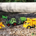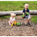De volledig mechanische voorlader maakt het mogelijk om zand, steentjes of blokken te scheppen en ondersteunt de ontwikkeling van motoriek en fantasie.