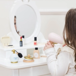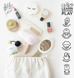 Geef kinderen hun eigen beautyhoekje. Deze elegante cosmeticaset uit de Honeybake-collectie van Le Toy Van bevat alles wat nodig is voor speelse verzorging – van spiegeltje, lippenstift en parfum tot föhn en kam. Alles is gemaakt van hoogwaardig FSC®-hout, met gladde, afgeronde randen en met de hand afgewerkt met milieuvriendelijke verven voor maximale veiligheid.