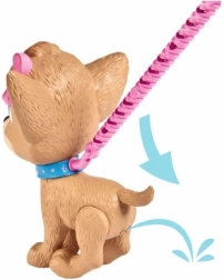 Mechanische bediening zonder batterijen – druk gewoon op de lijn en de chihuahua gaat zitten. Ideaal voor rollenspel met wandelingen en verzorging.